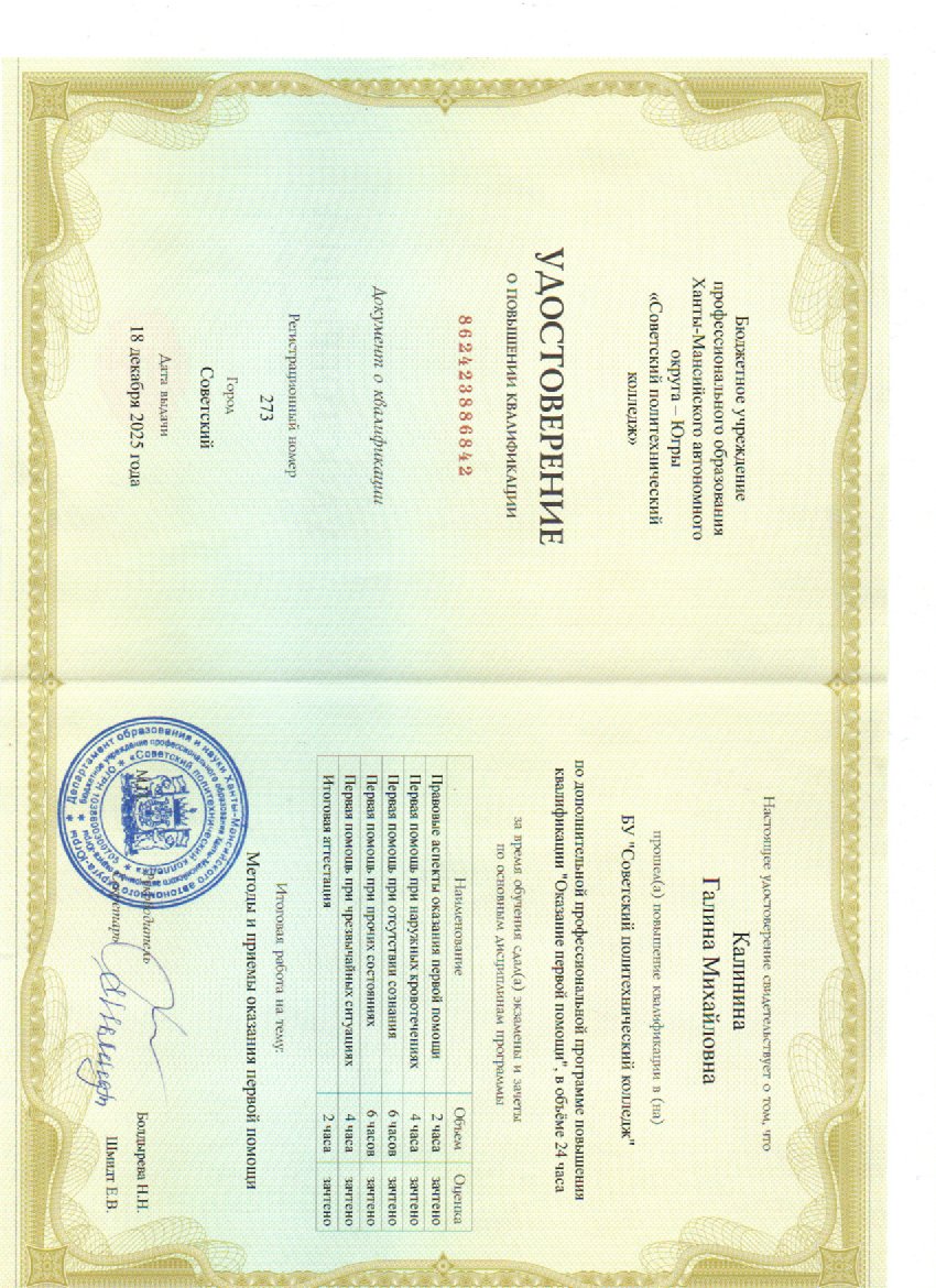 ( БУ ПО ХМАО - Югры "Советский политехнический колледж". . 24часов.часов. Форма обучения: очно-заочная.).
